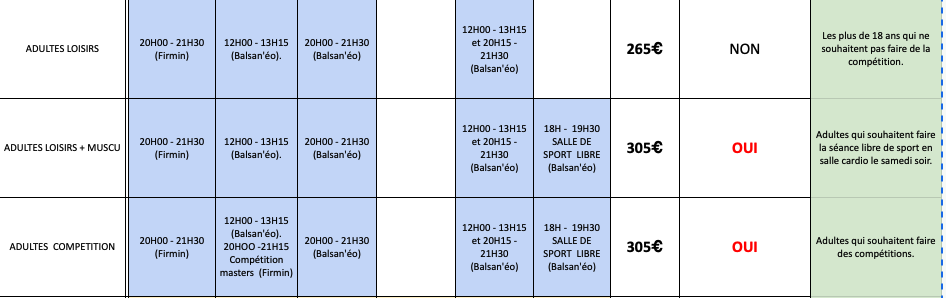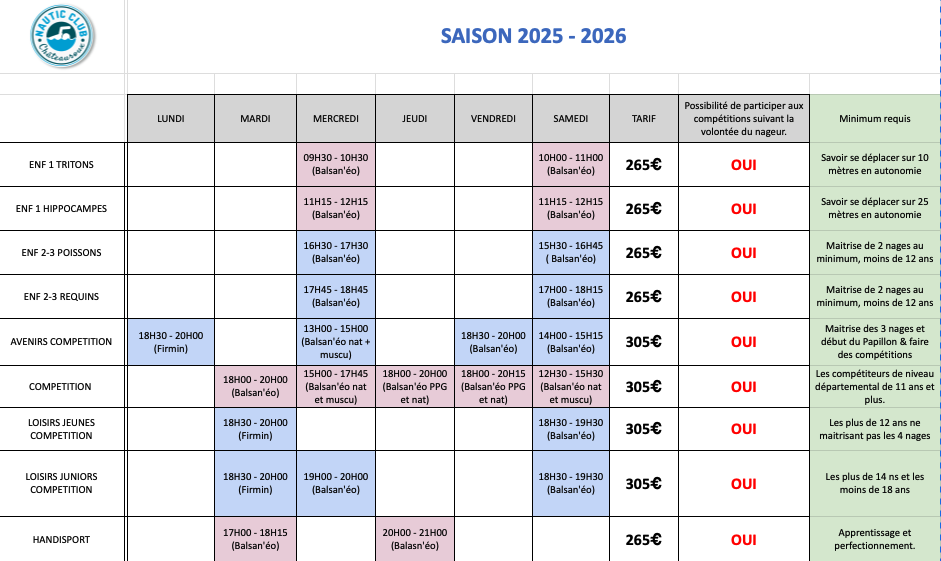 RENTREE 2025 - TARIFS - HORAIRES - LIEN D'INSCRIPTION - CALENDRIER SPORTIF